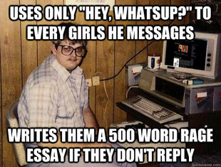 Random Guy: Well your profile is long. Do you really expect everyone to read the entire thing while contemplating whether or not to message you? I knew things you liked, didn’t like, media you prefer… All before saying hello.